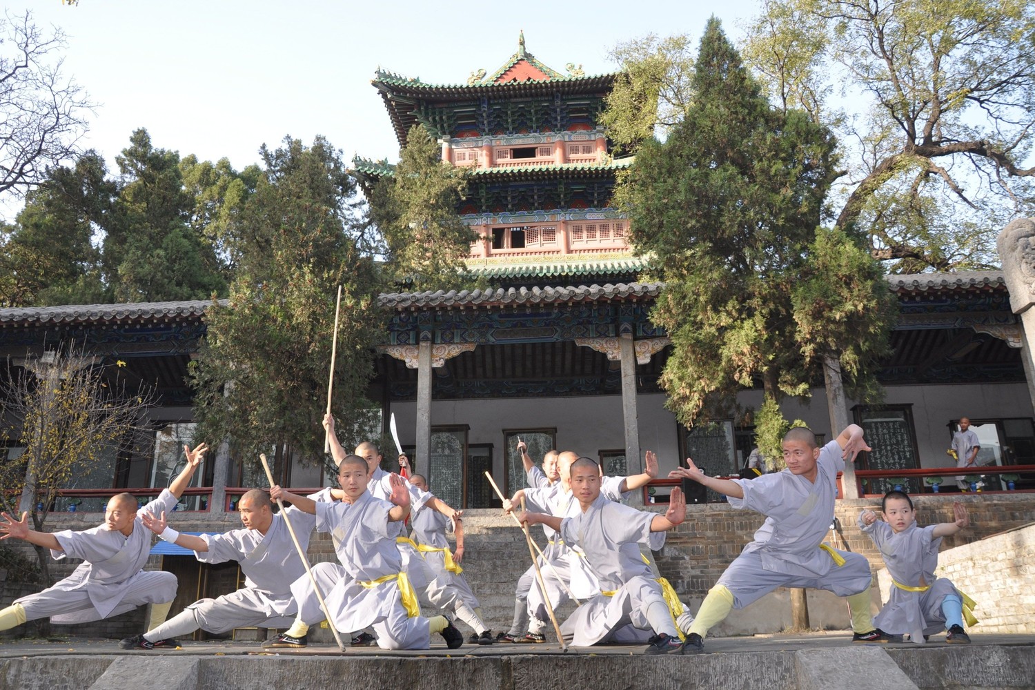 Après le petit-déjeuner, départ pour Luoyang en train TGV. À l’arrivée, après le déjeuner partez à la découverte des grottes de Longmen, qui renferment le plus vaste et impressionnant ensemble d’œuvres d’art chinoises des dynasties Wei du Nord (386-534) et Tang (618-907). Plus de 2 300 grottes abritent des sculptures et reliefs d’inspiration bouddhiste, témoignant de l’apogée de l’art chinois dans la sculpture. Ensuite, continuez la route pour le temple de Shaolin, un monastère connu mondialement, berceau des arts martiaux où fut notamment développé le fameux kung-fu dont sa forêt des pagodes est classée au patrimoine mondial de l’Unesco en 2010. Vous assisterez à une démonstration de Kung-fu.